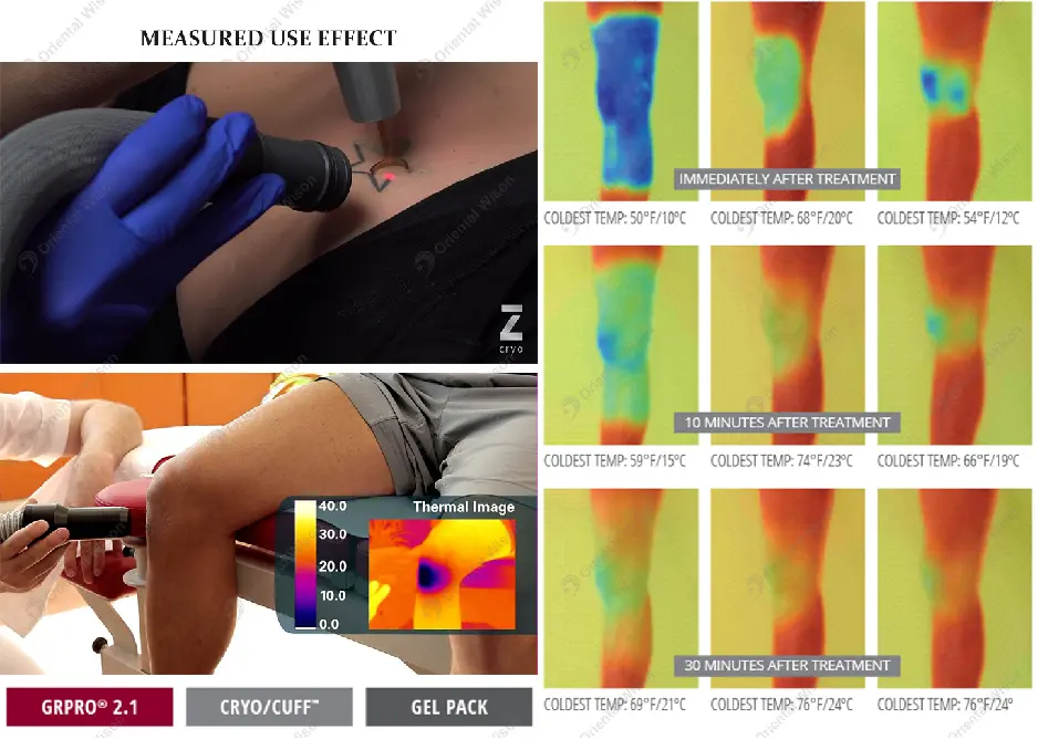 Новейшее поколение систем криорапии. Холодная кочная машина оснащена охлажденным воздухом для эффективного лечения боли, уменьшения набухания и расслабления мышц. Система обеспечивает криотерапию с точным размещением и при постоянной дозировке каждый раз. Устройство не использует расходные материалы и обеспечивает высокую мощность. Это обеспечивает быстрое снижение поверхностной температуры кожи, сохраняя при этом способность работать в течение всего дня.