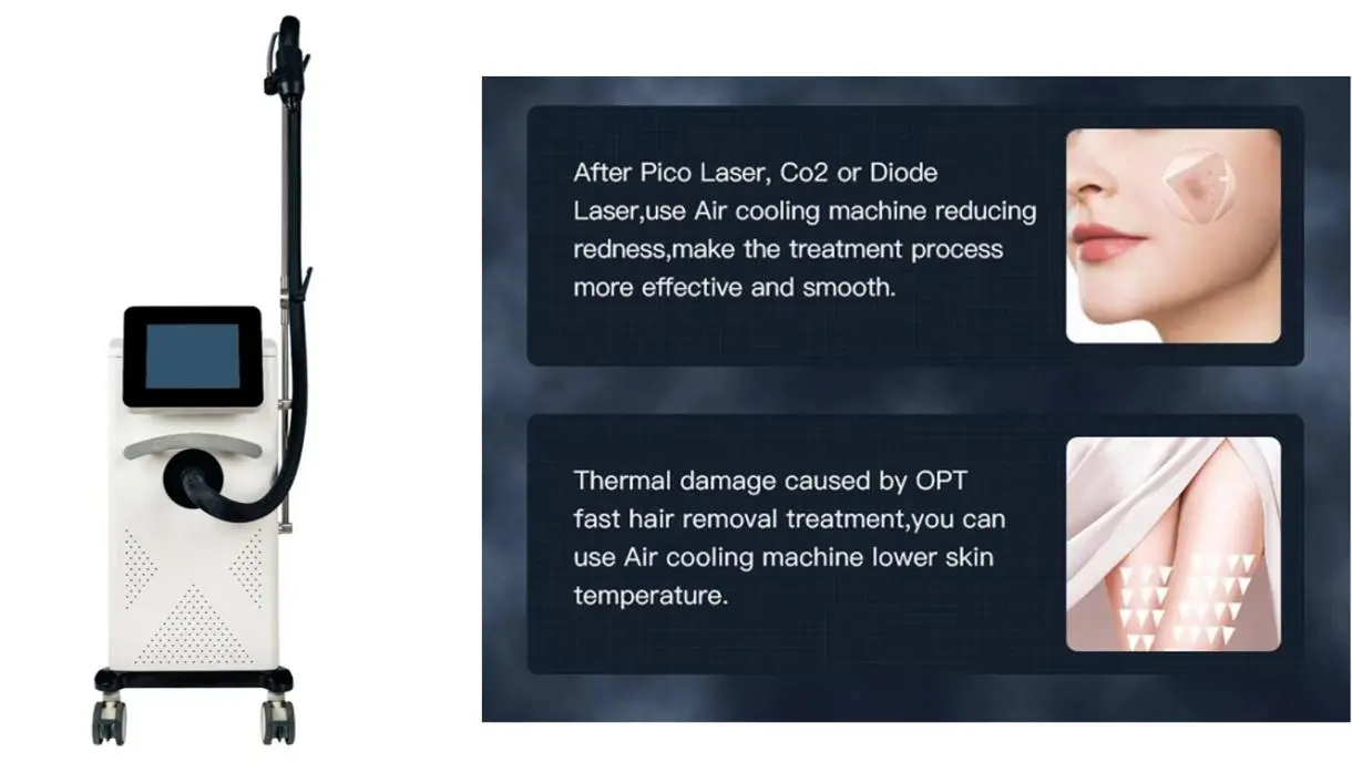 1) Непрерывно обеспечивает охлаждающий воздух в ткани, минимизируя боль и тепловые повреждения во время лечения лазера и IPL и обеспечивая временное облегчение для косметических инъекций.