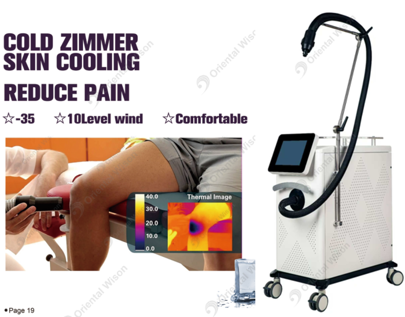 Рабочий принцип:Кожа охлаждающая машинаИспользует самую передовую технологию охлаждения, внутренняя система охлаждения впитывает воздух непосредственно и вытирает холодный воздух при правильной температуре, которая распыляет на зоны лечения пациента, чтобы охладить кожу и предотвратить из ожогов кожи